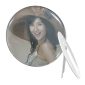 Round bamboo and metal keychains, metal in shiny nickel, front side with bamboo plate, with 32mm shiny nickel flat ring.