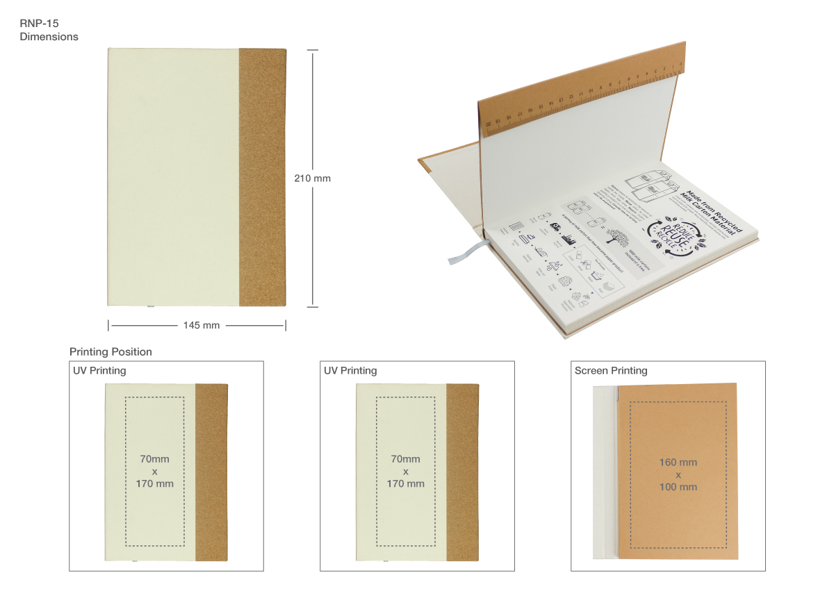 - A5 Size with hard cover made from Cork and Recycled Milk Carton material.