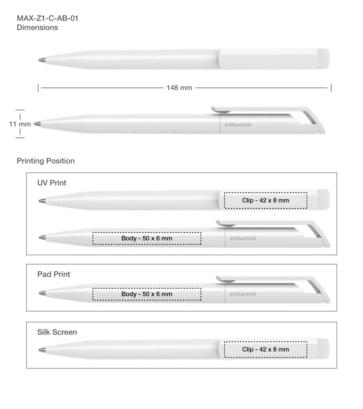 Maxema Flow pure antibacterial pens are customized pens. They are crafted with non-toxic and recyclable ABS plastic material. So, this ABS material is highly resistant. Thus, it makes the product antibacterial. Hence, it’s safe for use. It comes in a solid white color metallic barrel. Thus, it gives a shiny metallic look. This pen comes with twist action technology. So, the nib switches when you move the stylish clip. It comprises X20 ink. The ink is available in black and blue colors.
