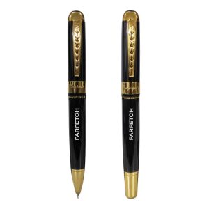 Arabic Traditional Bisht Design Metal Pens, Glossy Black with Gold Outline
