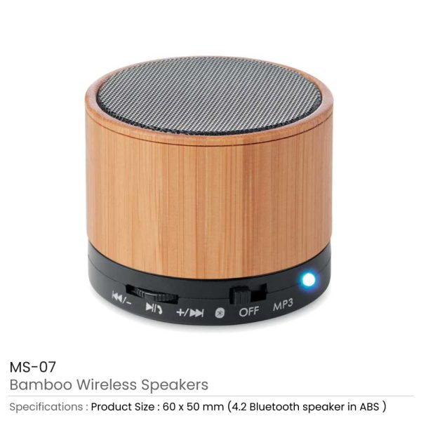 - 4.2 Bluetooth speaker in ABS with bamboo casing and LED light indication.