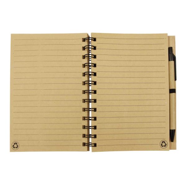 A bamboo notebook with a pen comprises a pen and a pen loop. Thus, these notebooks are used for multiple purposes. You can use it as a notebook and a pen holder. The cover of this notebook is made of durable and eco-friendly bamboo material. Thus, it makes this cover hard. This cover is in light brown with a black spiral ring. However, it also comprises an elastic strap for holding a pen. The pen had also crafted from bamboo material. It has a bamboo barrel with a black tip and clip. You can also use this promotional bamboo notebook for giveaways.