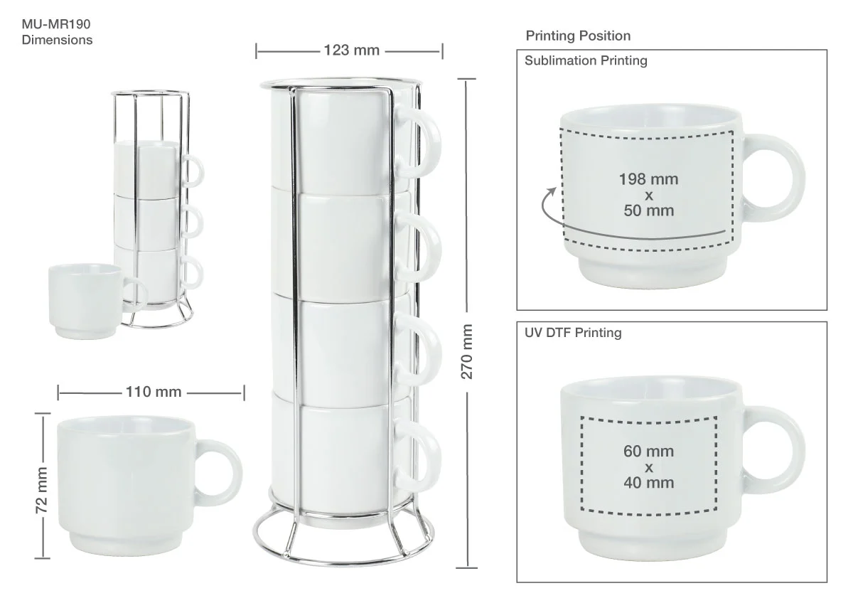 Ceramic Coffee Cups Set 4Pcs in Silver Metal Rack – 10 oz