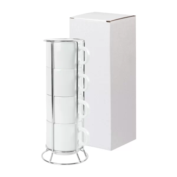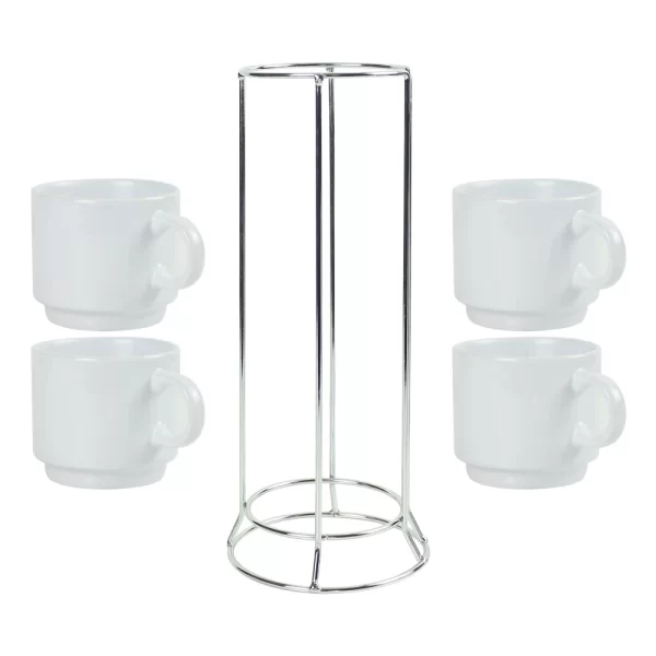 Ceramic Coffee Cups Set 4Pcs in Silver Metal Rack