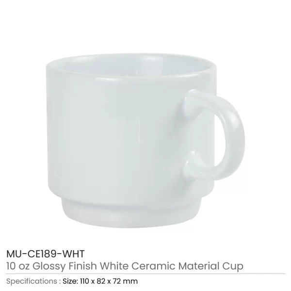 Ceramic Cups 10 Oz Glossy Finish White Color