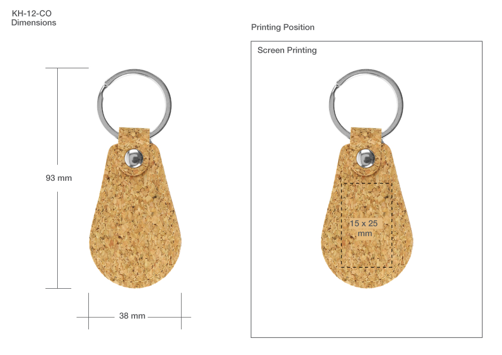Cork PU Keychains with 32mm metal flat key ring for key holding, and branding option.