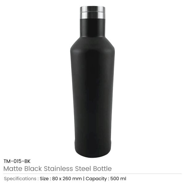 Double Wall Matte Black Stainless Steel Bottles, 500ml
