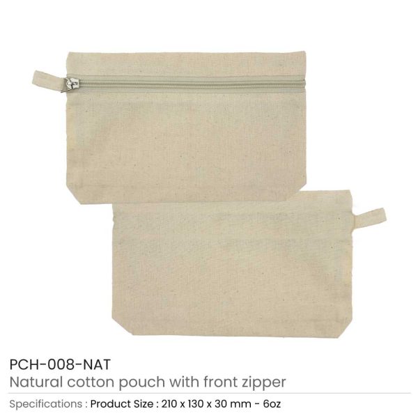 Eco-friendly Natural cotton pouch with front zipper closure and Branding Options.