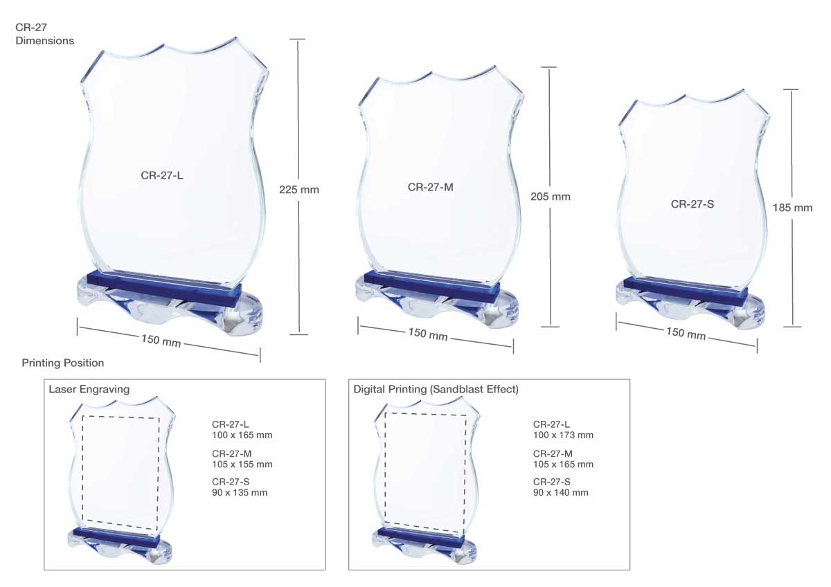 The design of this cutting-edge crystal award is in a cut and curved shape. The base of the crystal silhouette is ocean blue and very stylish. It is the perfect combination of formality while still having contemporary appeal for any occasion! There are three sizes available in this design. Hence, this would make an excellent gift at little cost. We also offer high-quality printing services using laser engraving and sandblasting techniques. Then customize your trophy with our design experts. We can engrave any text or image onto the face of each award, ensuring it’s personalized just for you!