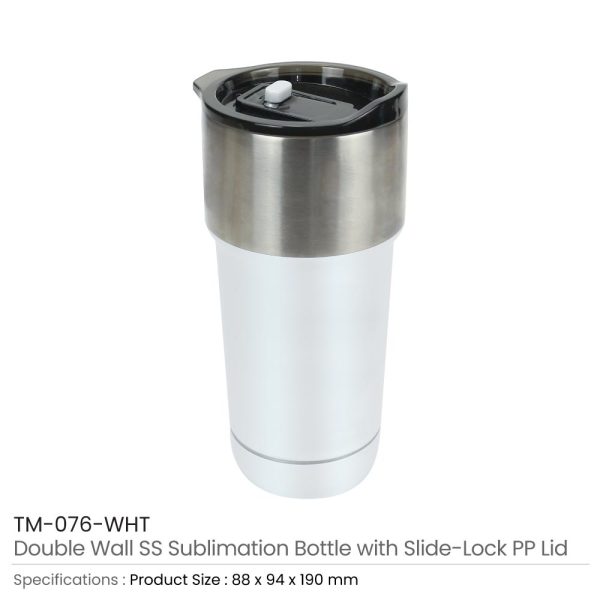 Double Wall SS Tumblers with Slide-Lock PP Lid, 591ml (20 oz)