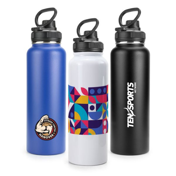 Double wall Stainless steel Bottles with easy-to-carry wide loop handles and trendy Matt finish colors, Vacuum insulated feature that keeps beverage temperature much longer, and spout lid that secures your drink from spilling.