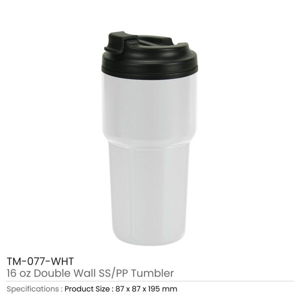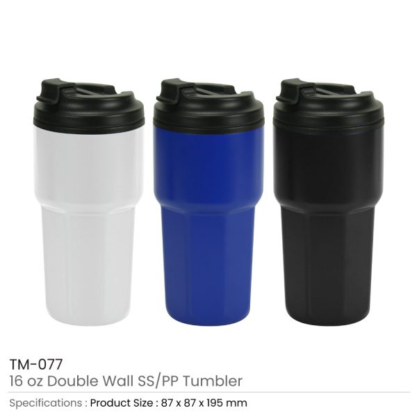 Double Wall Tumblers Flip-top PP Lid in 473ml