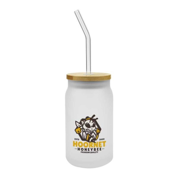 455 ml Sublimation Frosted Glass Bottle with Straw and Bamboo Lid with Branding Options.