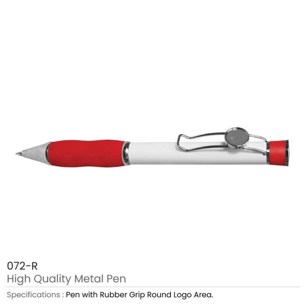 Metal pens with logo and epoxy coating are stylish and creative pens. These pens had crafted with an original metallic material. Thus, they are durable and long-lasting. These stylish pens have a white metallic body including the lower barrel. While the grip had crafted with colorful rubber material. Thus, you can use these pens as promotional items for business promotions. Besides, the barrel of this pen also has a unique and stylish clip. The clip and tip had crafted with shiny silver chrome material. Thus, these items are the best items for corporate gift suppliers in Sharjah. These logo metal pens have a top round silver area for logo imprinting.