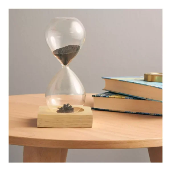 - Glass Container: This holds the sand and iron filings. The transparent design allows you to see the mesmerizing flow of materials as time passes.