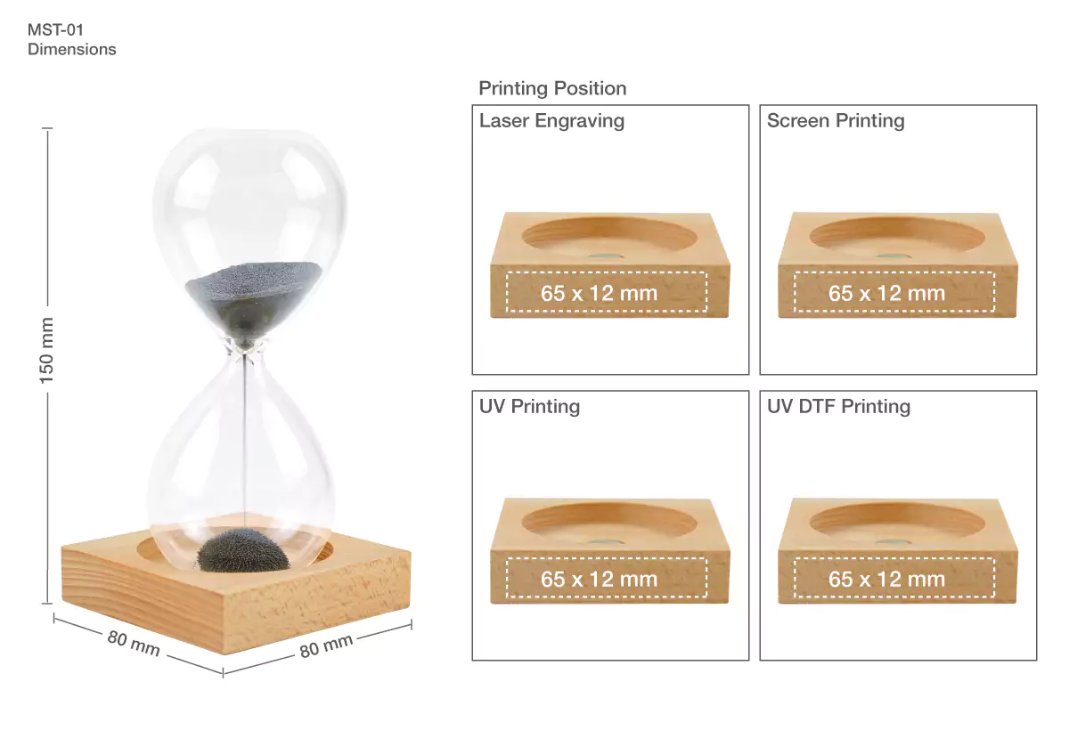 The magnetic sand timer with a wooden base is a captivating timepiece that measures 2 minutes. It features a glass container filled with sand and iron filings that create mesmerizing patterns as they interact with magnets in the base. This decorative piece combines functionality with artistry, making it perfect for meditation, timing short tasks, or enhancing your decor.
