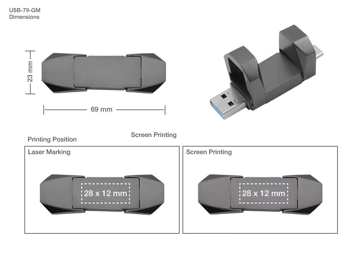 The OTG USB 32GB combines a sleek design with cutting-edge technology, featuring dual connectors (USB 3.0 and Type-C) for fast, seamless data transfer. With a stylish gun metal finish and a durable swivel design, it’s the perfect portable storage solution for both personal and professional use.