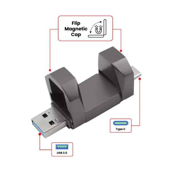 OTG USB Flip in Gun Metal 32GB V. 3.0 Type C Flip Magnetic Cap