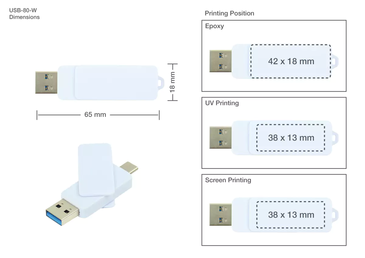 OTG White Swivel USB 64GB V. 3.0 Type C