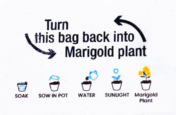 - Seed Paper Material: These bags are typically made from biodegradable paper embedded with marigold seeds. The paper is often crafted from recycled materials like post-consumer waste or cotton scraps.