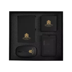 Elevate your corporate gifting with this Premium Office Gift Set, thoughtfully curated for professionals. This sleek black collection features high-quality accessories and modern essentials, combining style and functionality. Ideal for executives, conferences, and brand promotions, the set comes in an elegant black PU sleeve pouch with customizable branding options.