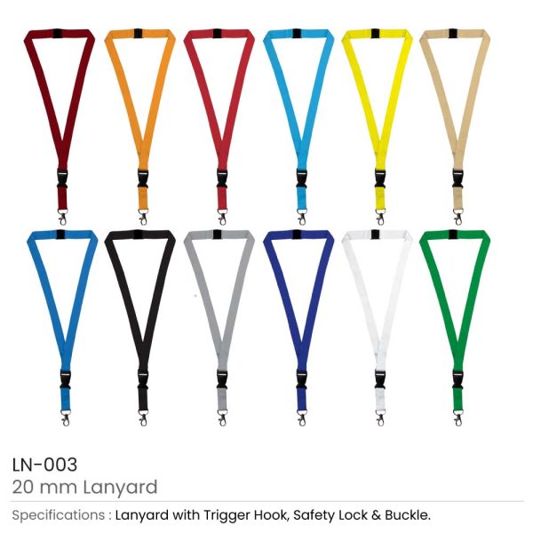 Lanyards with Hook, Safety Lock, and Buckle, 20 mm