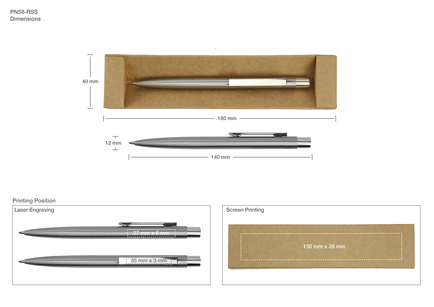 Recycled Stainless Steel pens with chromed plastic button and metal clip presented in Kraft Paper Box