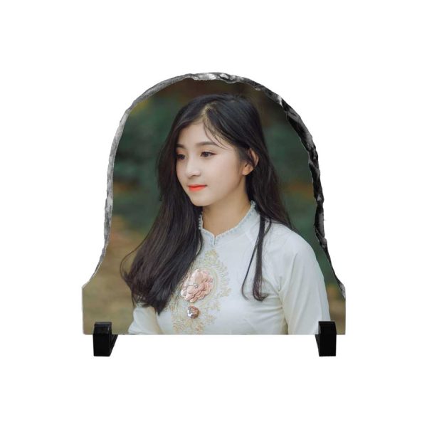 Photo rock slates are stylish design rocks. They had composed of apparent and glossy rock slate. Thus, they are sleek. Moreover, they are reliable and long-lasting. This rock slate constitutes a size of 200 x 200 mm. It has unleveled. They are customizable. So, people primarily use these photo rocks for personalized photographs. Further, they are very reasonable as small picture gifts for nearly every event. The lower high-grade black stand of the rock makes it more glamorous. Thus, you can use these slates as customized rock slates. The layout of this rock slate had so embellished yet elegant and graceful. You can also use them as decoration articles.