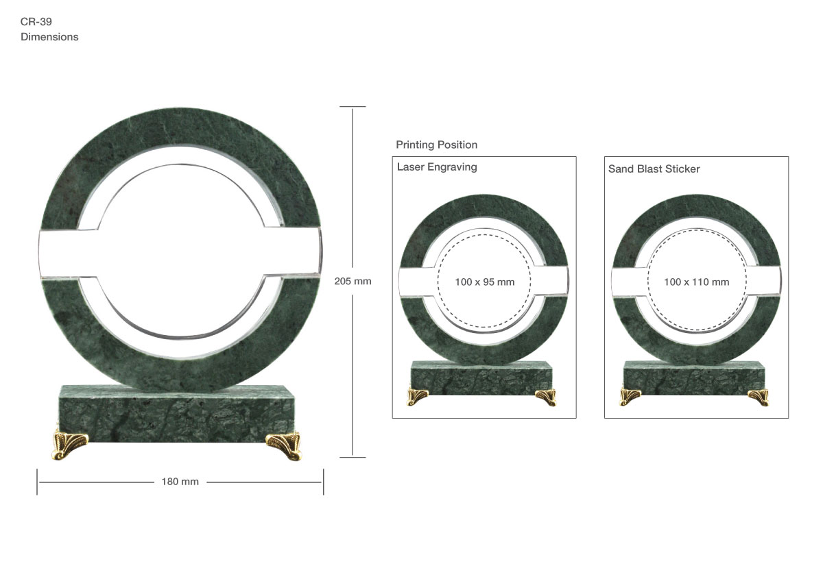 Round-Shaped Crystal and Marble Awards in Fiber Hardboard Box with Branding Options.