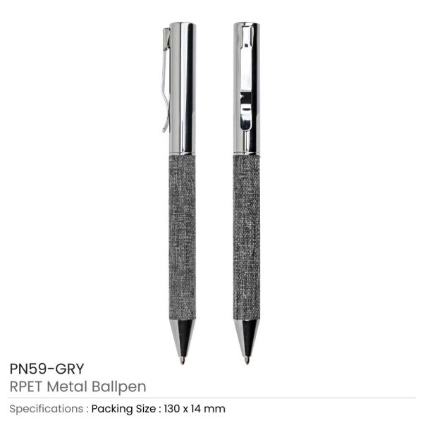 Twist Action Grey Color RPET wrapped Metal Ball Pens with Branding Option.