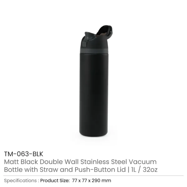SS Bottles with Straw & Push Button Lid — Double-Wall Vacuum, 1Liter