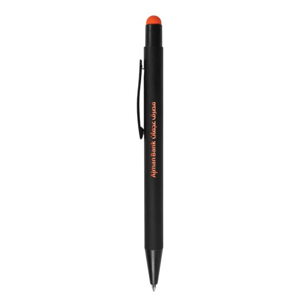 Stylus metal pens are stylish and elegant metal pens. They had created with strong metallic material. Thus, they are durable and long-lasting. This pen comprises a colorful black metallic barrel. Both the barrel and tip of the pin are in the same black color. The whole structure of the pen is rubberized. Thus, it has a soft rubber texture. Moreover, it’s a 2-in-1 pen. The stylus is present at the top of the pen. It is colorful and available in multiple colors. Thus, you can use it on your smartphones. Apart from the barrel, it also comprises a clip. The clip is in the same black color as the barrel. Thus, it’s a perfect promotional pen with a stylus. Thus, you can also use this promotional pen with a stylus for the giveaway.