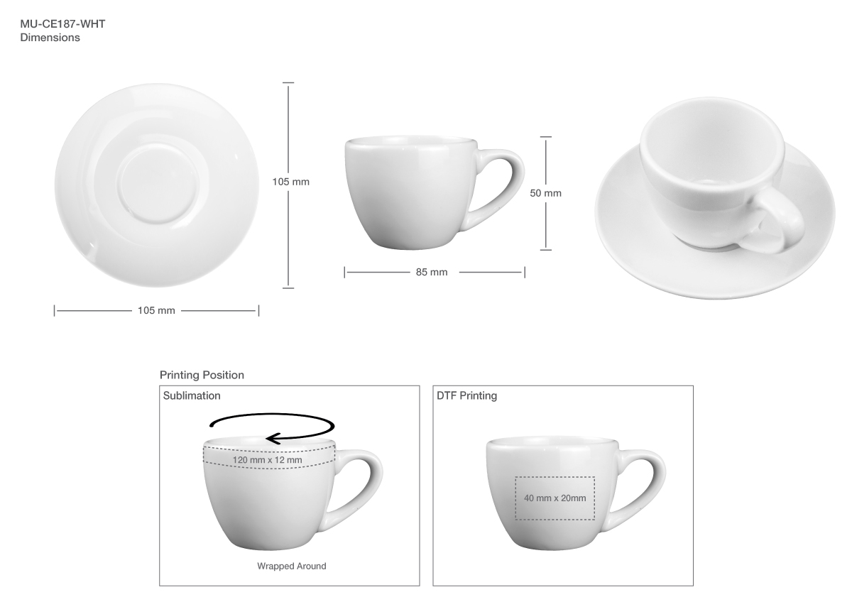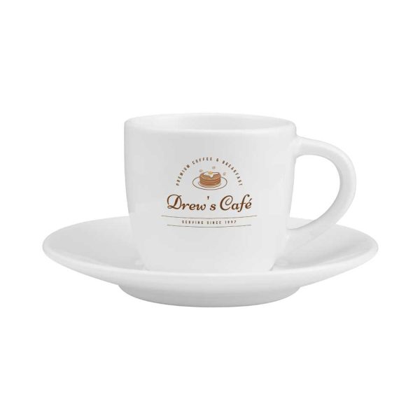 White Sublimation Cup and Saucer, 100 ml Capacity with Branding Options.