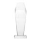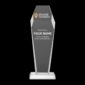 Wooden trophy with diamond-shaped crystal on top presented in the black hard-board box.